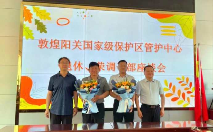 2024年5月24日,一场简单而温馨的座谈会在阳关管护中心举行。会场里有欢笑、有感激、有不舍,大家欢聚一堂欢送退休、调任干部。