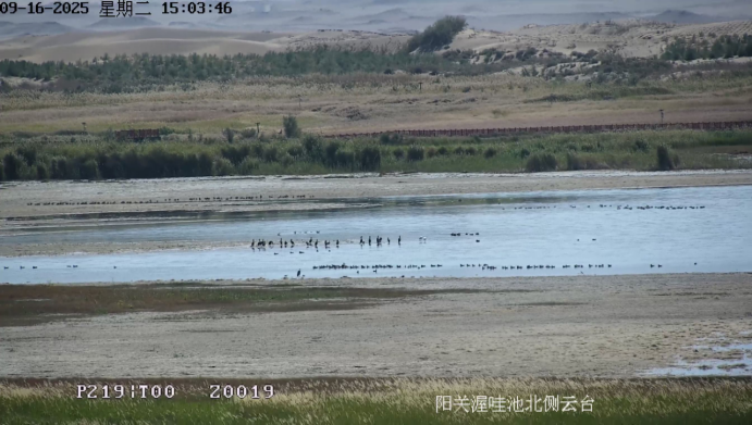 9月16日,甘肃敦煌阳关国家级自然保护区再度呈现生态盛景。大批候鸟相继迁徙抵达此地,与湿地的秋水共同勾勒出一幅充满生机的生态画卷。