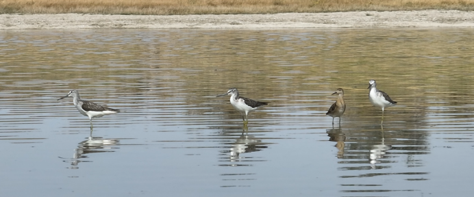 9月18日,甘肃敦煌阳关湿地自然保护区鸟类监测人员监测到小群青脚鹬在此停歇。