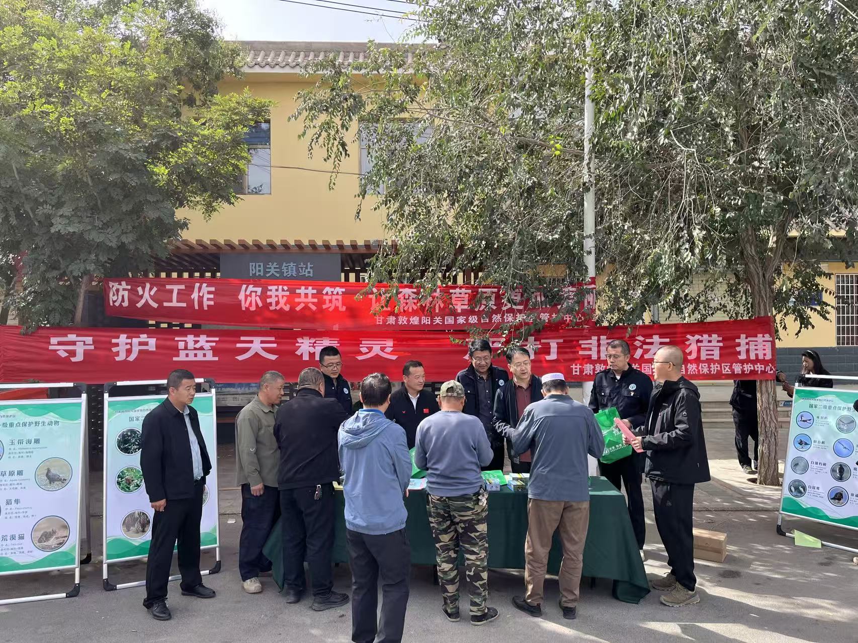为深入贯彻全省保护鸟类活动和打击非法捕猎贩卖鸟类专项行动动员部署视频会议精神,9月25日,甘肃敦煌阳关国家级自然保护区管护中心在阳关镇中心广场组织开展了以“守护蓝天精灵·严打非法猎捕”为主题宣传活动。