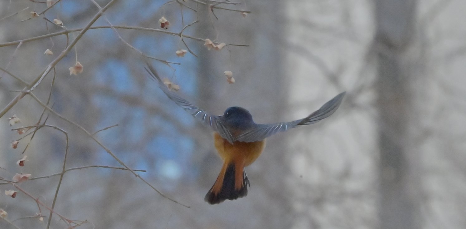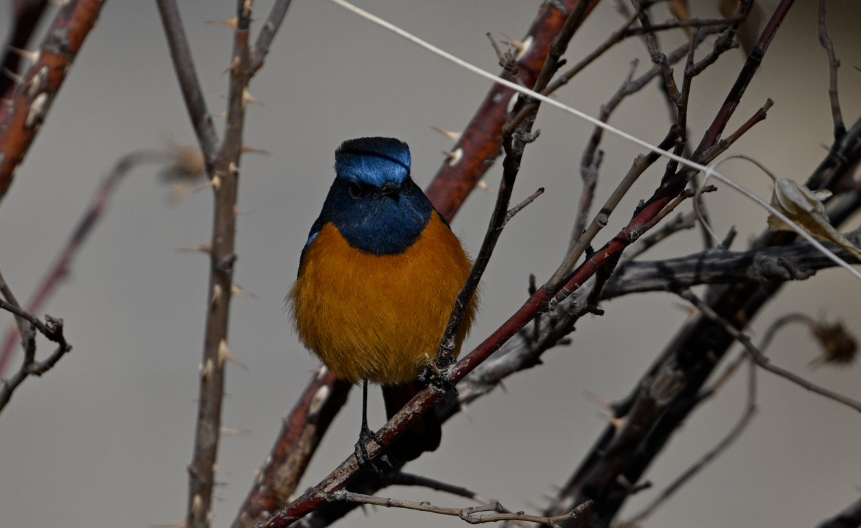 据监测人员介绍,当日在保护区林地巡护时突然发现蓝额红尾鸲出没,它们时而落在沙枣树中,欢快地跳跃着并摆动尾羽;时而停在黑枸杞顶端的枝丫上,轻轻扇动翅膀,以悬停的姿态啄食浆果。监测人员随即用相机捕捉其倩影。蓝额红尾鸲主要以昆虫为食,在秋冬季节喜爱食用各类灌木与乔木的细小果实,在病虫害防控与植物种子传播方面发挥着双重生态作用。它们对栖息地的植被、昆虫、浆果资源有着较高要求。此次在保护区林地的觅食行为,既表明当地生态环境持续改善,也反映出保护区在恢复自然食物链方面取得了进展。
