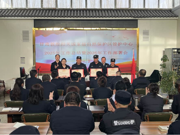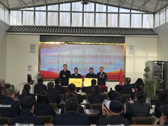 2月10日,敦煌阳关管护中心召开2025年度工作总结表彰暨2026年重点工作部署会,复盘过往、凝聚共识、擘画蓝图。中心全体干部职工、各保护站护林员参加会议。